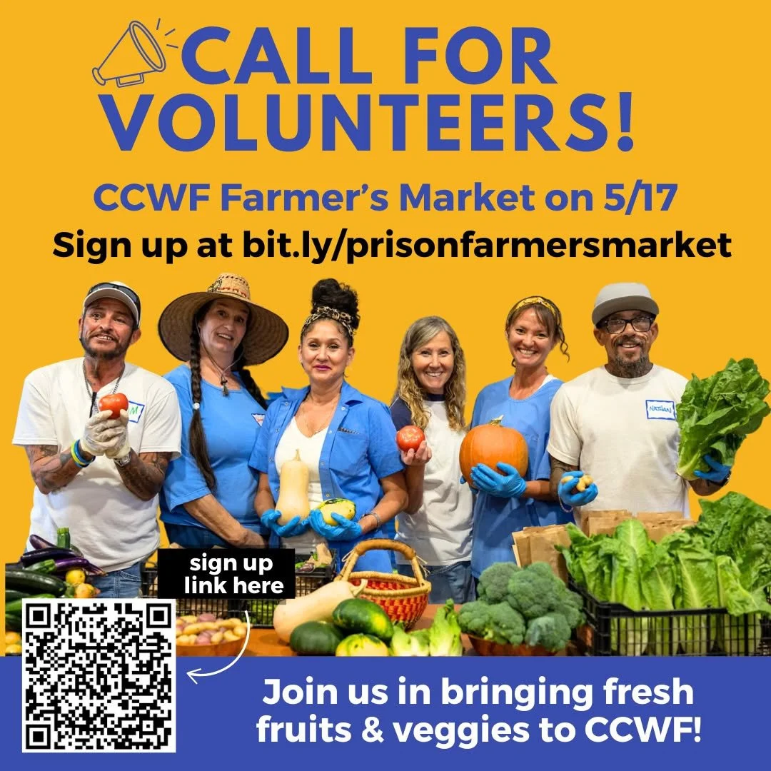 There are a variety of ways you can help make this day possible. Sign up to volunteer at bit.ly/prisonfarmersmarket or use the QR code on the flyer to access the sign-up form.